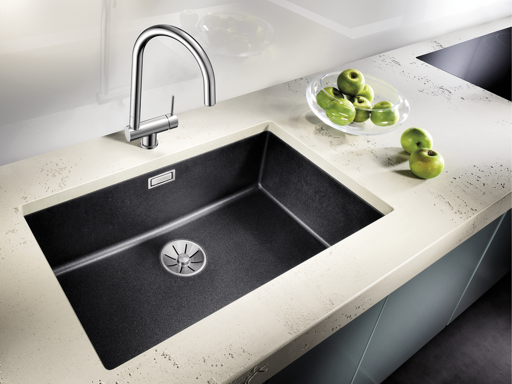 Кухонный смеситель Blanco Coressa-F оснащен удобным складным механизмом. Всего одним движением его можно сложить и за считанные секунды и опустить в чашу мойки. Это позволяет быстро и широко открывать окно, так как носик полностью погружается в чашу. В сложенном состоянии конструкция смесителя имеет высоту всего 6,5 см. Звуковой щелчок на верхнем и нижнем упорах является верным признаком того, что клапан снова находится в полностью функциональном положении.